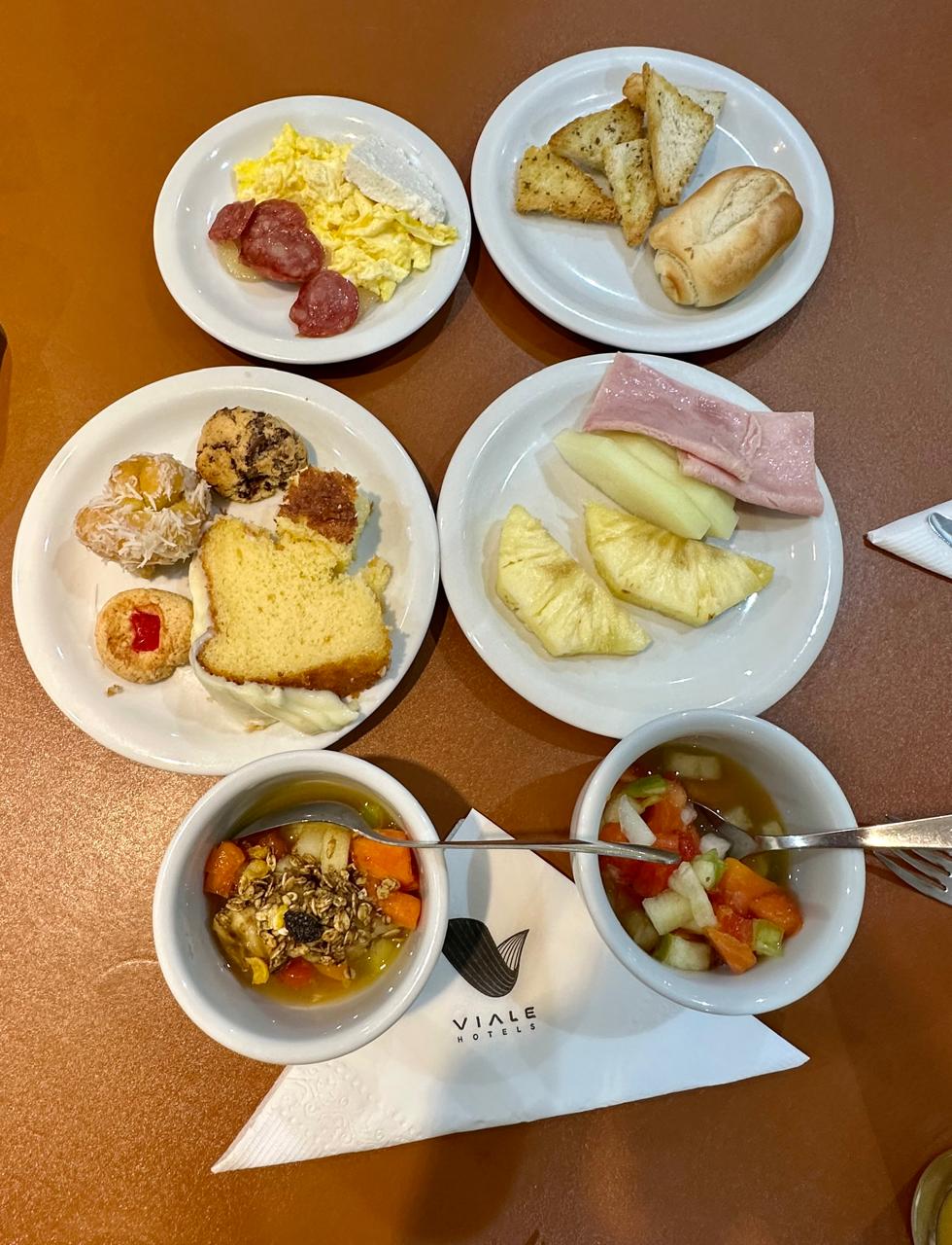 Sobre o café da manhã, só temos elogio, bem variado, itens fresquinhos e bem feitos. 😋🍰
