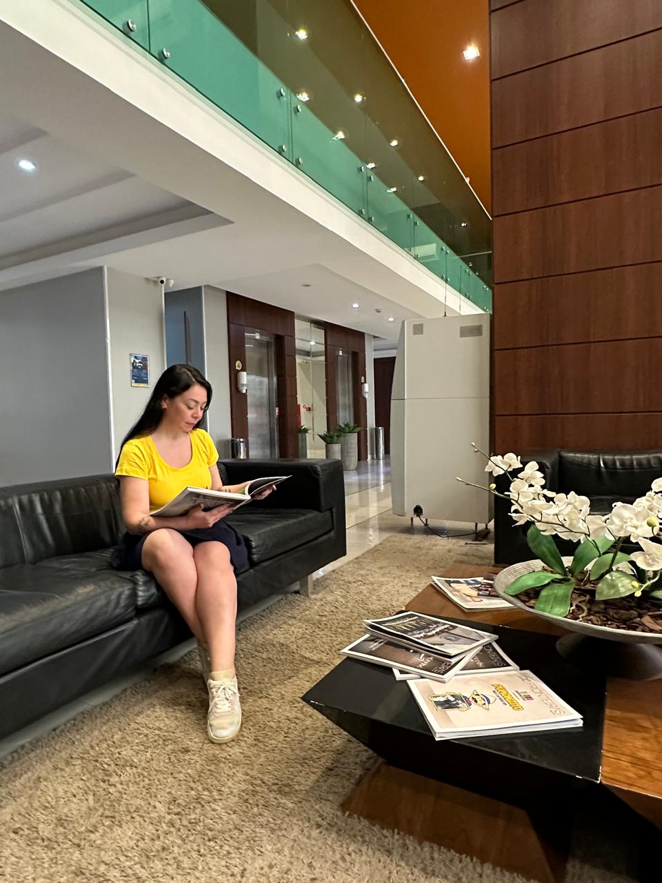 São 17 andares e 150 apartamentos todos com piso hipoalergênico, frigobar, cofre, mesa de trabalho, TV e ar condicionado. 🛎️🛏️