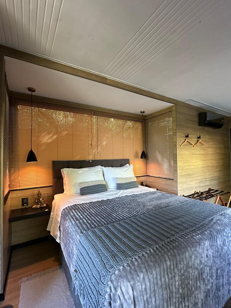 Ficamos na Cabana Udine, uma das opções mais especiais da pousada. Ela combina arquitetura contemporânea com conforto absoluto, a cozinha é completinha e 100% equipada, além de: