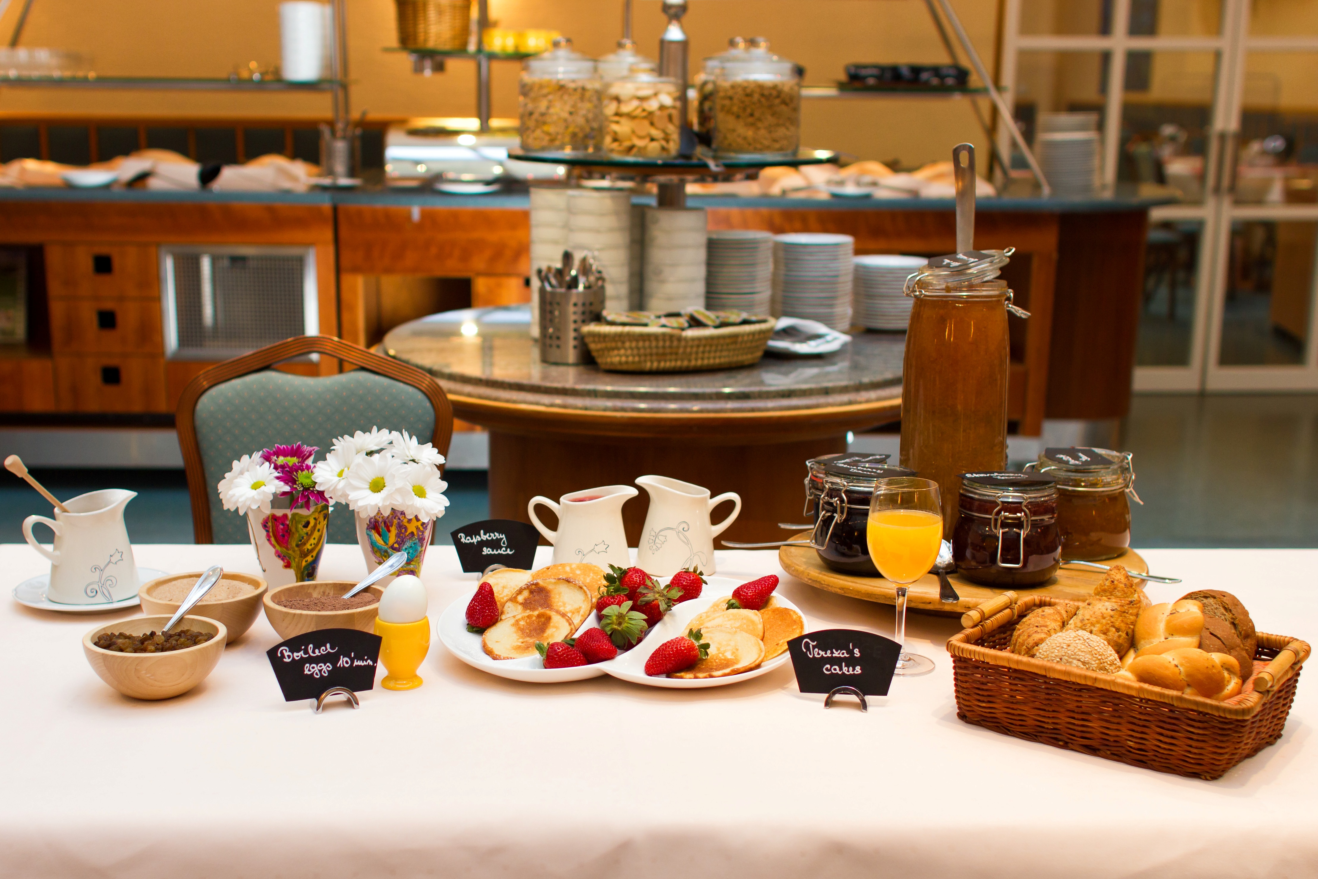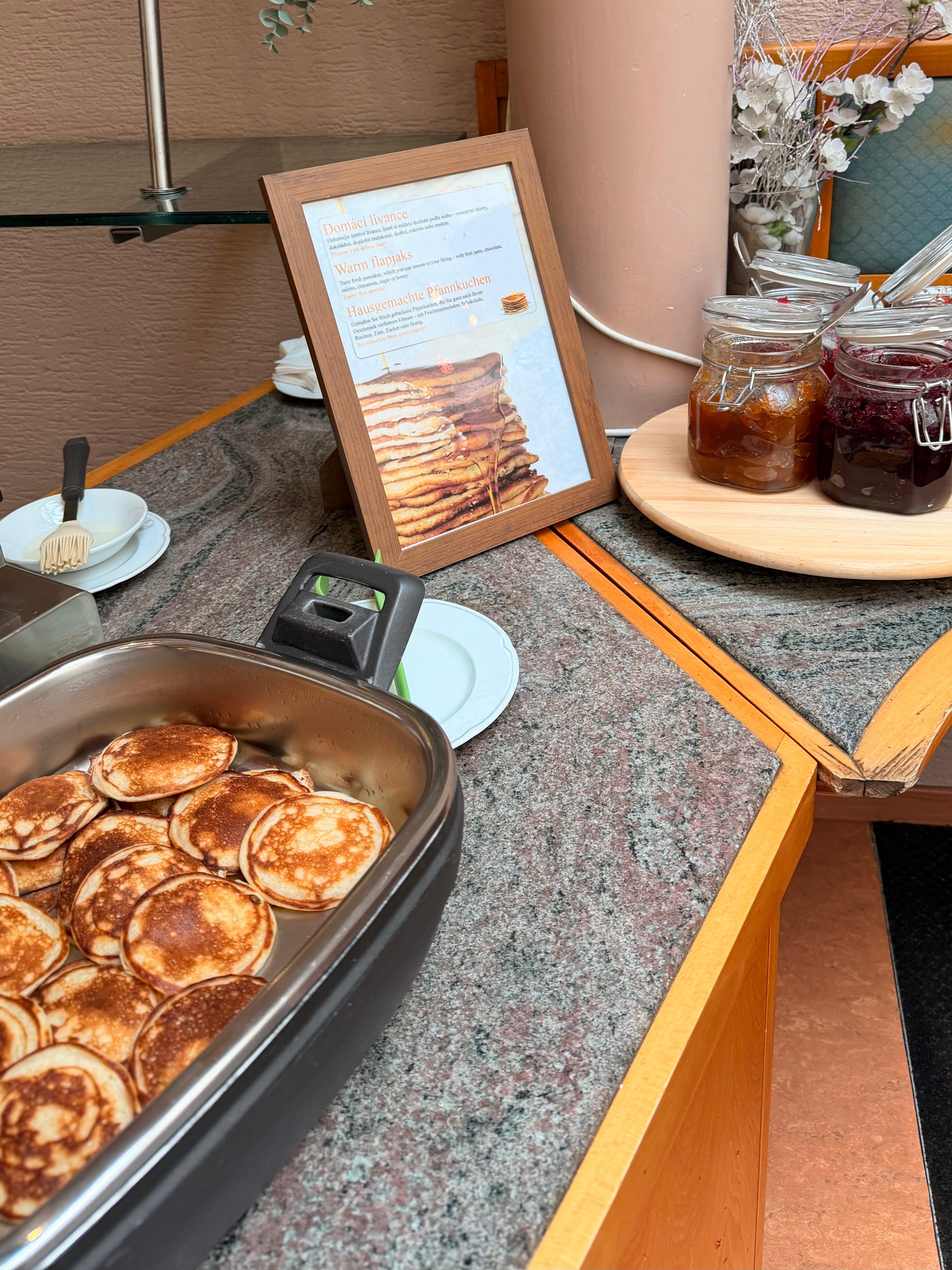 O café da manhã é outro ponto positivo, variado, com panquecas quentinhas feitas na hora, além de frutas frescas, pães e bolos. O ambiente é charmoso e espaçoso. E tem algo bem único, você pode pegar uma caneca pintada à mão com a inicial do seu nome para degustar o autentico café de Praga, muito especial.