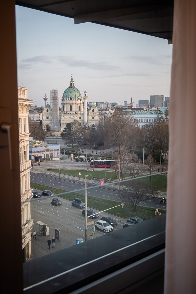 O hotel combina perfeitamente o estilo clássico europeu com um toque moderno, algo muito característico de Viena.