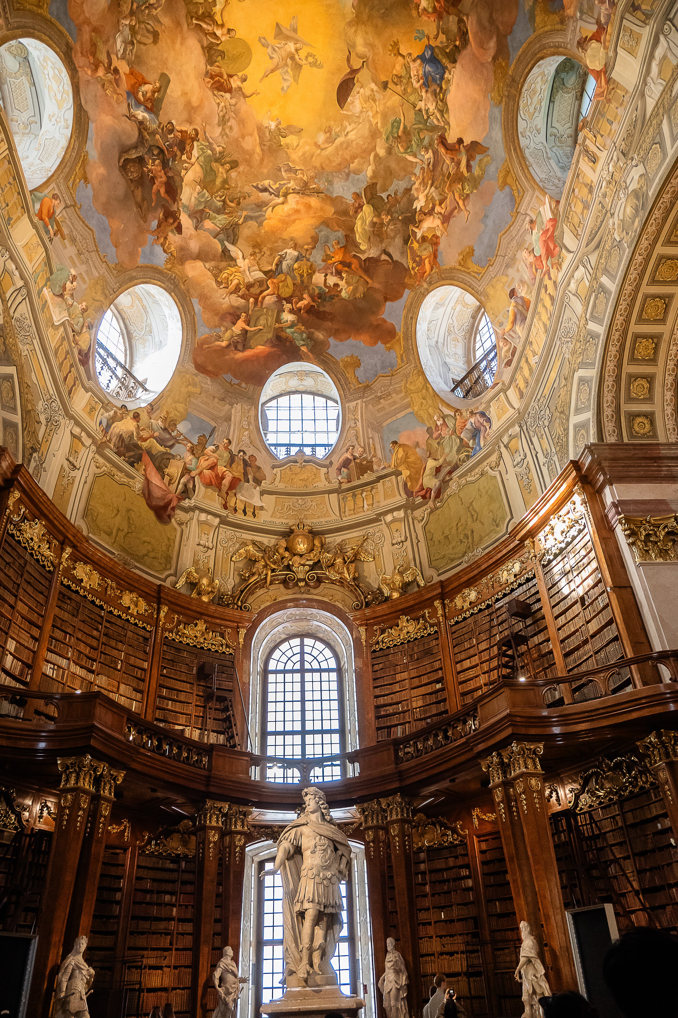 O grande destaque vai para o salão monumental: afrescos gigantes no teto, esculturas em mármore e estantes de madeira que parecem saídas de um filme. No centro, está a imponente estátua de Carlos VI do Sacro Império Romano-Germânico, responsável pela construção do espaço. Grandiosidade define e sim, você terá vontade de sentar e ler todos os livros, mas não é permitido visto o valor histórico dos livros.
